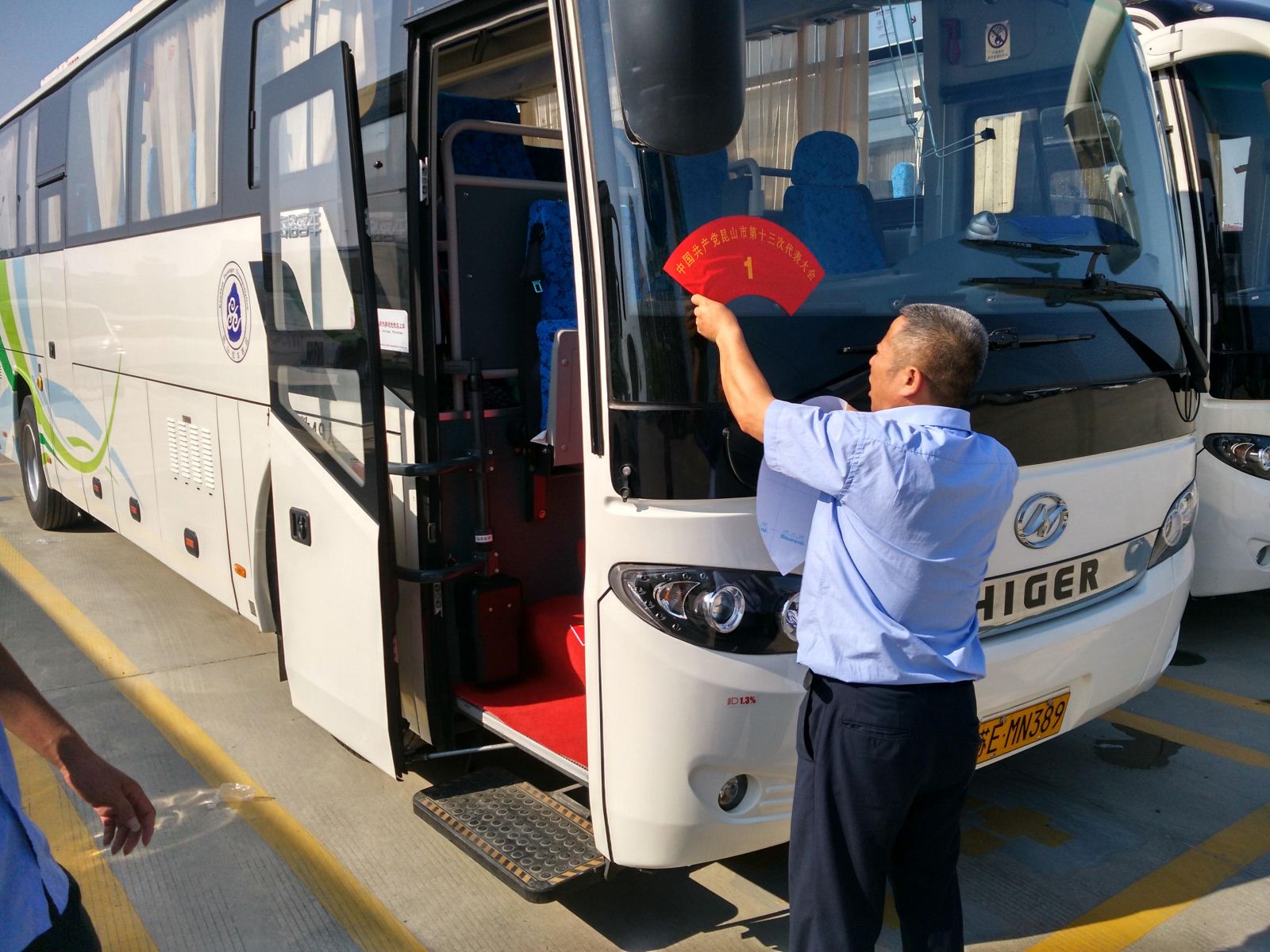 中國共產(chǎn)黨昆山市第十三次代表大會于7月25日召開,歷時4天,于昨日中午圓滿落幕。12:15分,與會代表們走出昆山市文化藝術(shù)中心會場,走上大巴車。12:30分,10臺新能源電動大巴車載著400