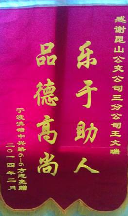 公交司機助人為樂 寧波市民寄錦旗表感激