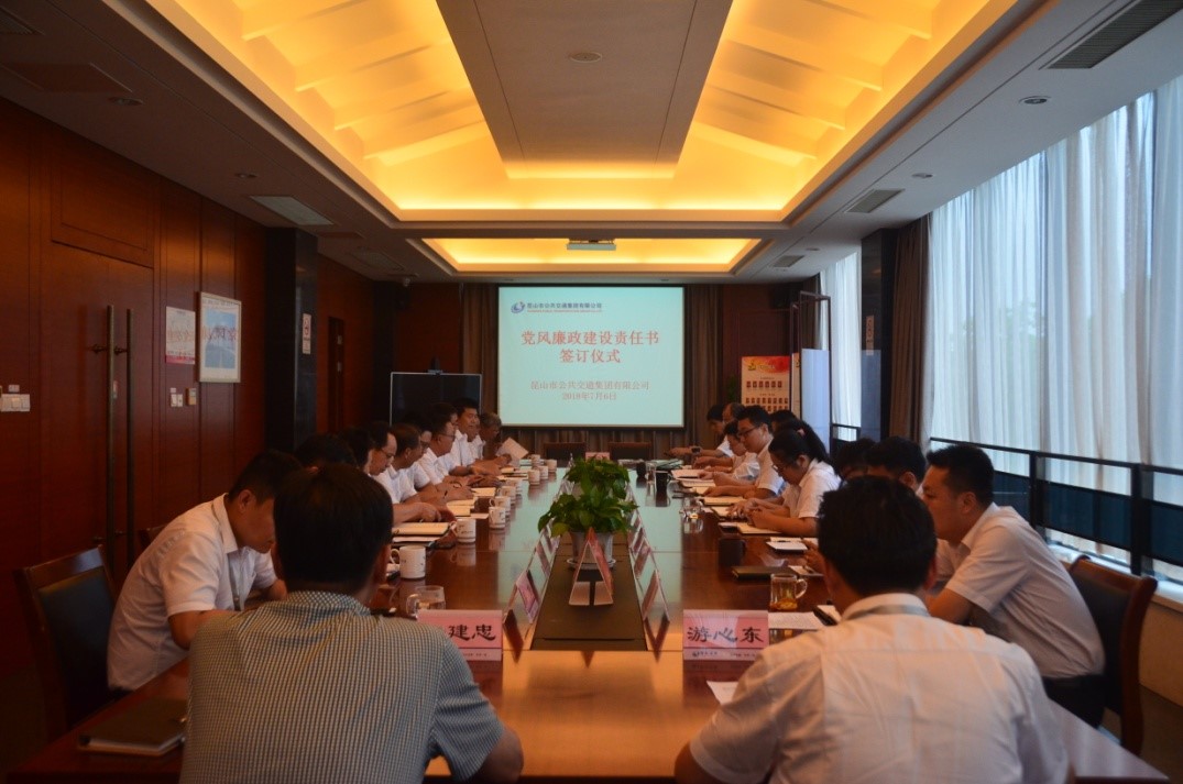 為進(jìn)一步貫徹落實(shí)上級(jí)關(guān)于全面從嚴(yán)治黨的要求,扎實(shí)推進(jìn)黨風(fēng)廉政建設(shè)工作,近日,昆山公交集團(tuán)開展了黨風(fēng)廉政建設(shè)責(zé)任書的簽訂儀式。集團(tuán)黨總支書記沈建忠與參加儀式的23位黨政班子領(lǐng)導(dǎo)和各部門(分公司)負(fù)責(zé)人簽
