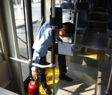公司三支安全監(jiān)控組,群策群力,全心全力抓好兩項(xiàng)活動(dòng)的開展。營運(yùn)安全監(jiān)控組:負(fù)責(zé)對(duì)各線路營運(yùn)紀(jì)律、駕乘(服)人員安全動(dòng)態(tài)等進(jìn)行全面監(jiān)控;場站安保監(jiān)控組:負(fù)責(zé)對(duì)場站管理人員以及各場站(包括鄉(xiāng)鎮(zhèn)站、首末站)、租賃屋、駕校、加油站、金庫等重要場所進(jìn)行全面監(jiān)控;生產(chǎn)安保監(jiān)控組:負(fù)責(zé)對(duì)維修人員以及生產(chǎn)車間、?;愤\(yùn)輸車輛、車輛安全技術(shù)狀況及設(shè)施設(shè)備(指所有車輛)進(jìn)行全面監(jiān)控。公司對(duì)查出的安全隱患問題,均發(fā)出整改通知書,責(zé)令限期整改;對(duì)查獲的違規(guī)違法駕乘(服)人員,根據(jù)情節(jié)分別采取批評(píng)教育、處罰以及培訓(xùn)的方式進(jìn)行相應(yīng)處理。