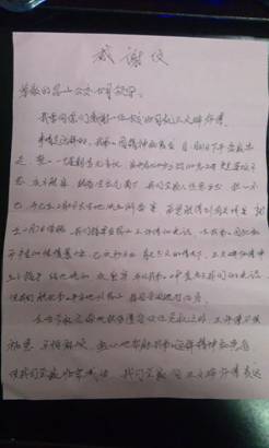 2月19日中午12時(shí)許,郵遞員給線路管理王前森送來(lái)一個(gè)來(lái)自浙江的郵包,線管王前森就覺(jué)得奇怪!我在浙江一沒(méi)朋友、二沒(méi)親人,怎么會(huì)有郵包呢?懷著疑問(wèn)大家一起打開(kāi)了郵包,打開(kāi)后才發(fā)現(xiàn)了一個(gè)秘密,這是一封感謝信,經(jīng)車(chē)隊(duì)了解才弄清了助人為樂(lè)的事故。