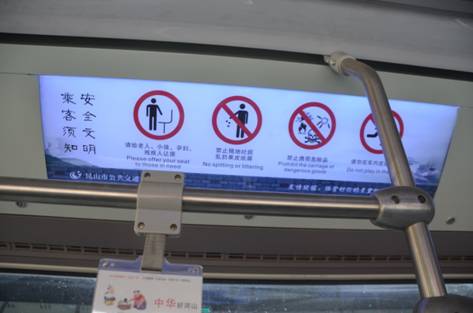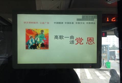 在今年的文明城市創(chuàng)建過(guò)程中,市公交公司積極利用所屬1400多輛公交車的車載視頻、車輛LED電子顯示屏、車內(nèi)拉手、座椅后背、廣告位等信息發(fā)布媒介,制作發(fā)布了社會(huì)主義核心價(jià)值觀、圖說(shuō)我們的價(jià)值觀、中國(guó)夢(mèng)、講文明樹(shù)新風(fēng)、文明乘車、愛(ài)護(hù)車廂環(huán)境等一系列公益廣告,向市民乘客進(jìn)行宣傳,在十米車廂營(yíng)造文明創(chuàng)建氛圍。