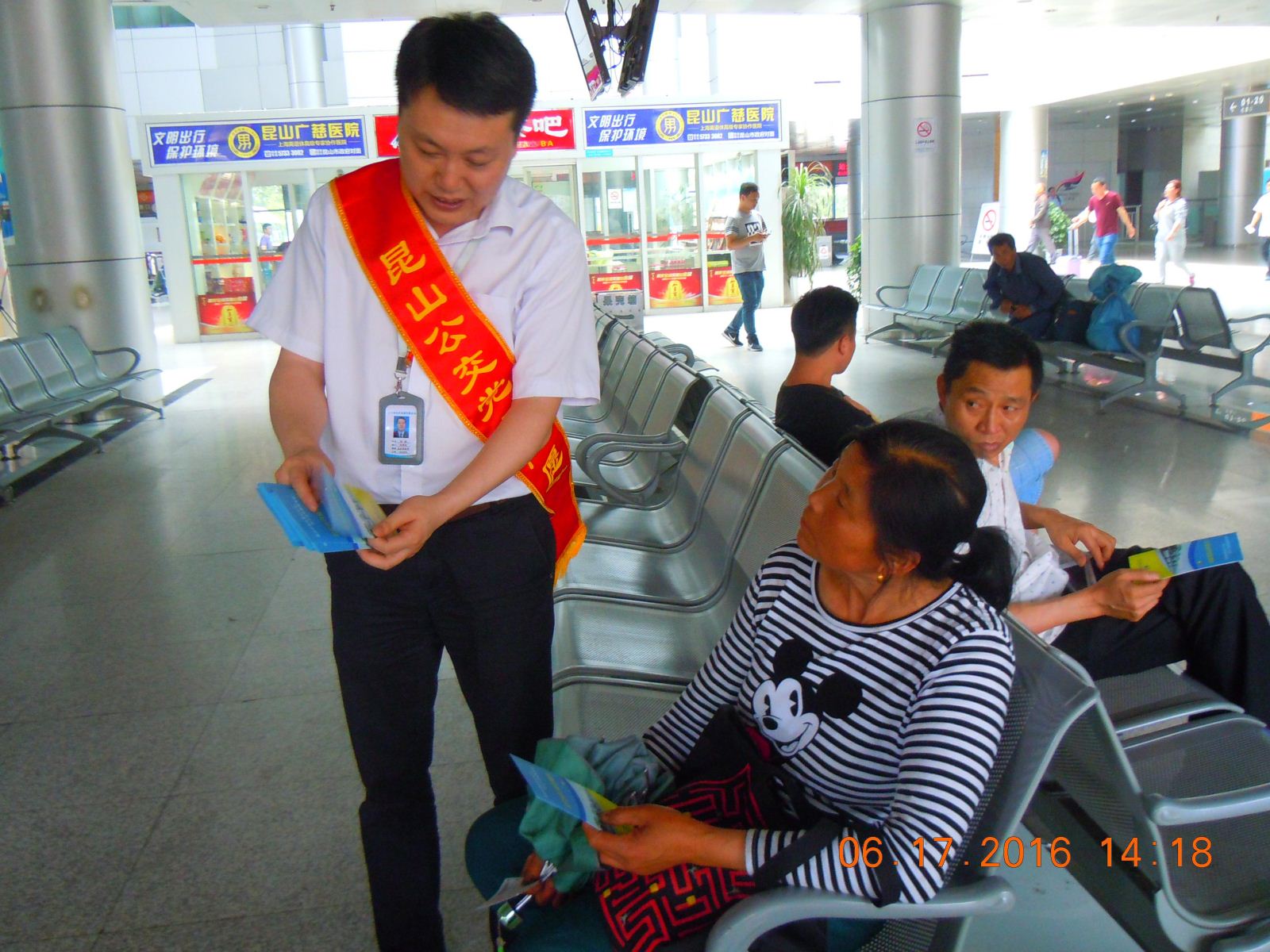 2016年6月17日下午,公交公司第一黨支部圍繞 “兩學(xué)一做”活動(dòng)組織部分黨員代表在新客站開展黨員志愿者服務(wù)活動(dòng),支部書記、支部委員及部分黨員共五人參加。