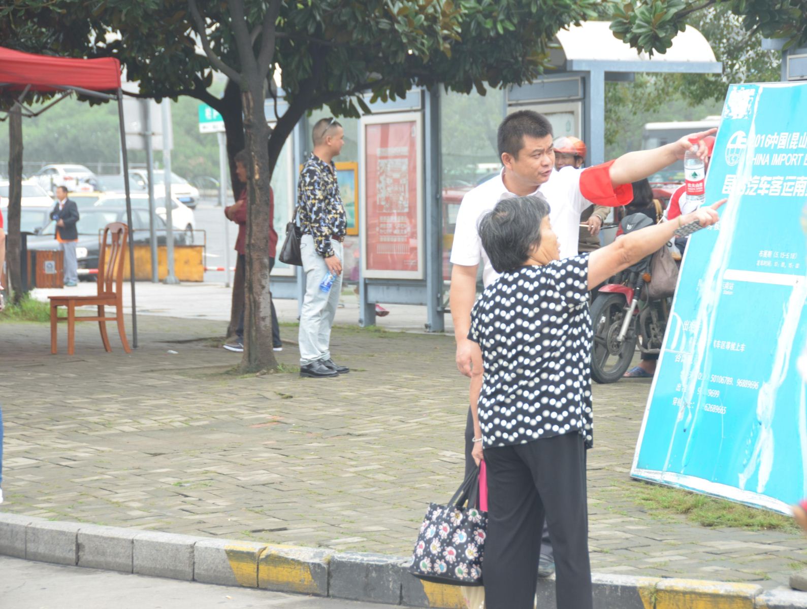 乘客向黨員志愿者進行公交路線咨詢。