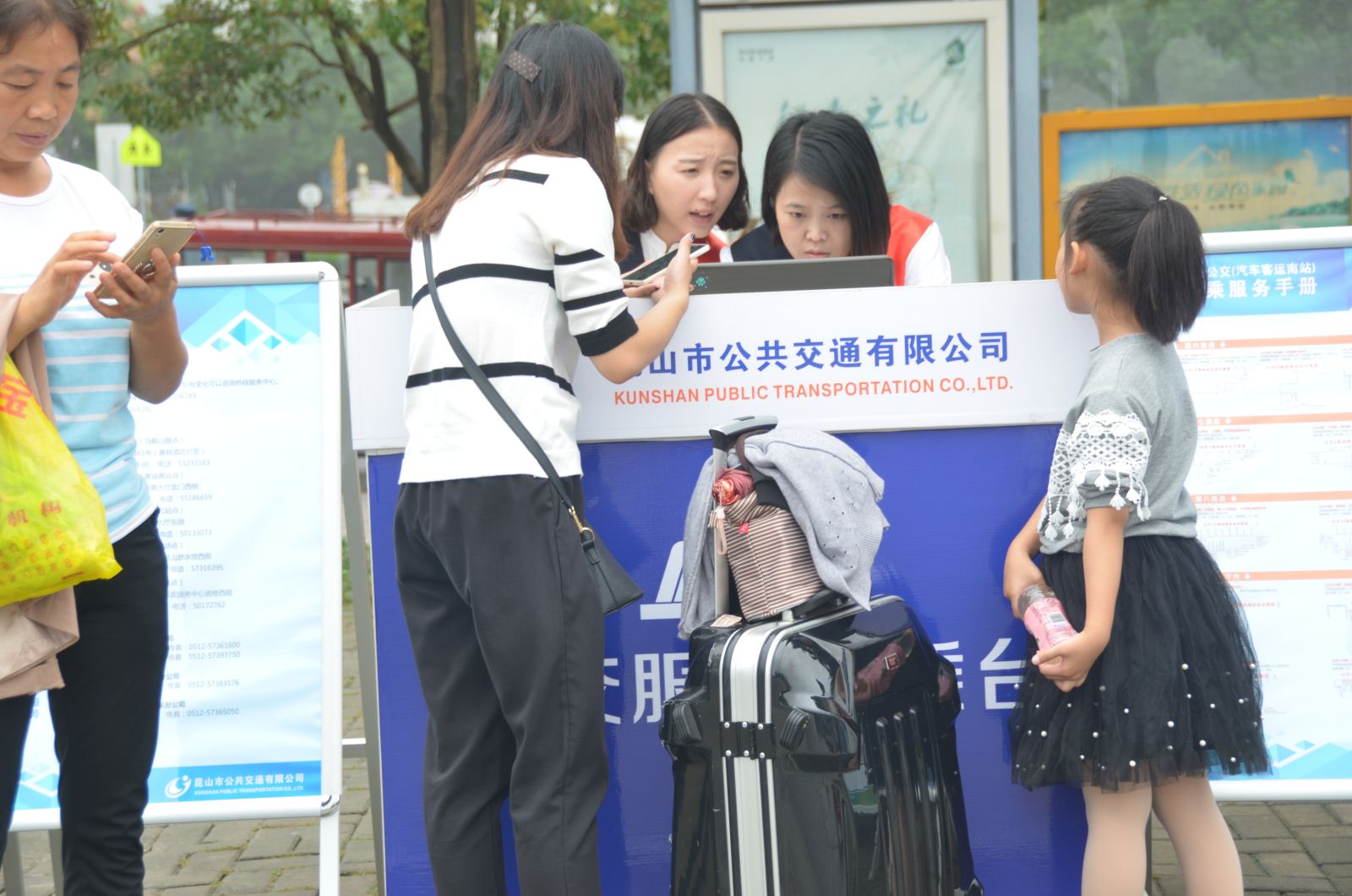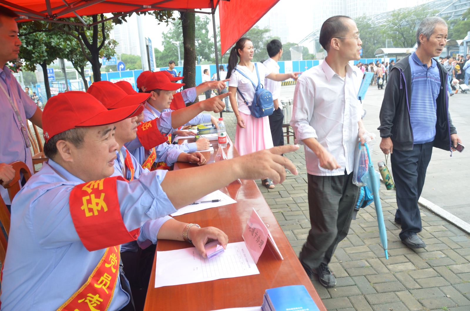 公司同時在汽車南站公交站臺附近設(shè)立了“綠色出行 公交服務(wù)”便民服務(wù)臺和公交導(dǎo)乘臺,以幫助有需要的乘客進行兌換零錢、咨詢線路、公交服務(wù)問答、建議收集、公交手冊發(fā)放等服務(wù)。